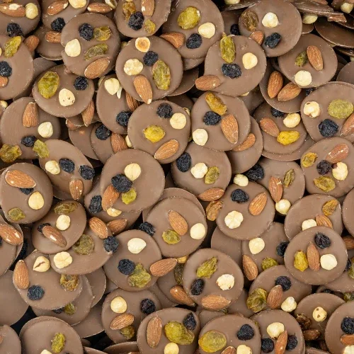 Trakteer jezelf op een heerlijke mix van pure verwennerij met onze ambachtelijke chocolade flikken. Elk stukje is rijkelijk bestrooid met jouw favoriete ingrediënten — perfect in balans en vol van smaak: